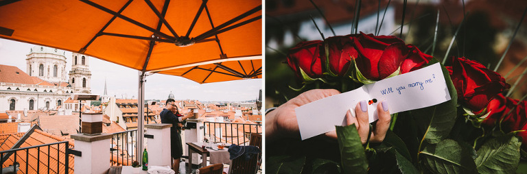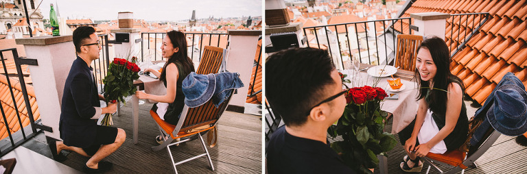 The June was full of surprise proposals. I captured them all over Prague. This is one of them tooka a place at the rooftop restaurant of Coda restaurant in Prague.