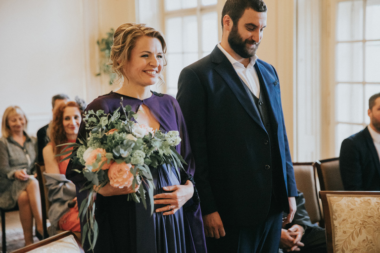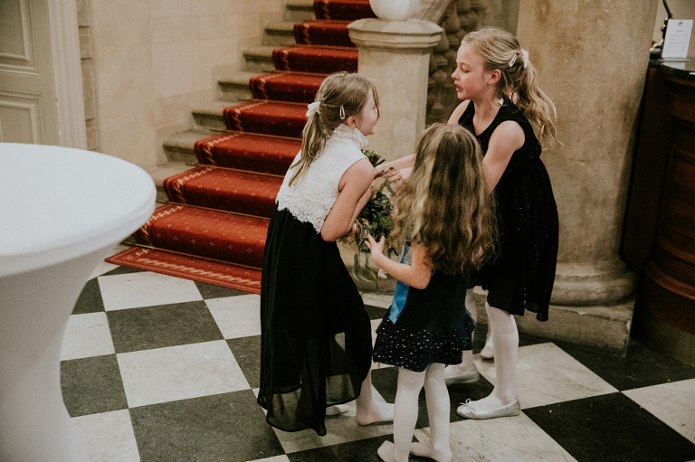 The bride, expecting a baby boy, decided to get married in a violet dress with a handmade satin coat made by Julie (our common friend fashion designer, for whom I work for in Amsterdam, you can follow our work here). She also made the same coats and the flower girls who were running around in it all day.